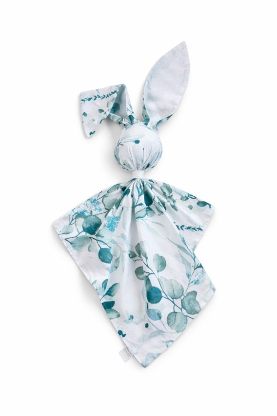 Miękka przytulanka DOUDOU kocyk króliczek z bawełny - Eucaliptus mint - biały