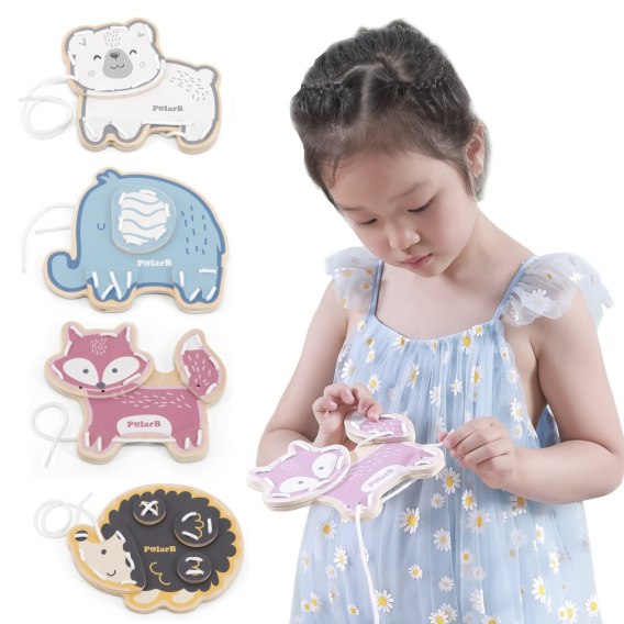- zadaniem dziecka jest dopasowanie głowy, nogi, uszu lub ogona do podstawy zwierzątka, a następnie połączenie ich razem za pomocą sznurka tak, aby uzyskać trójwymiarowe zwierzęta,