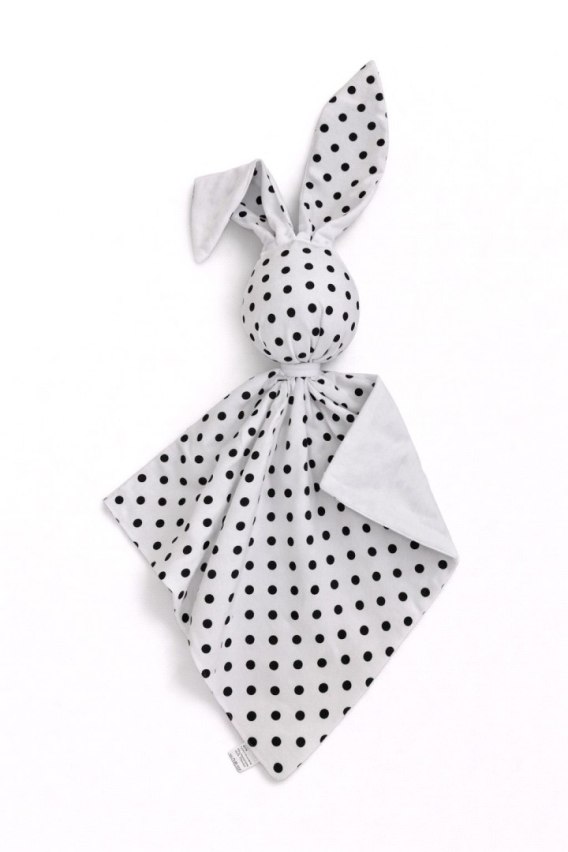 Zając przytulanka DOUDOU dwustronna bawełna i minky - Groszki czarne - biały