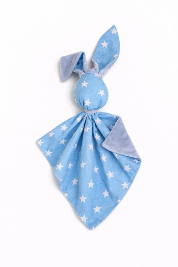 Zając przytulanka DOUDOU dwustronna bawełna i minky - Gwiazdki niebieskie - niebieski