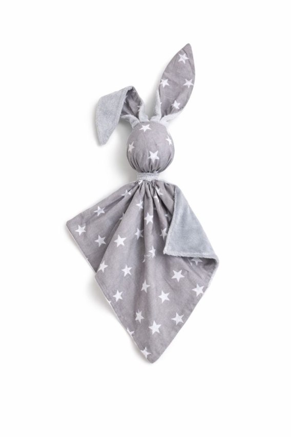Zając przytulanka DOUDOU dwustronna bawełna i minky - Gwiazdki szare - szary