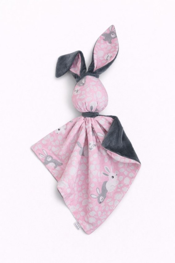 Zając przytulanka DOUDOU dwustronna bawełna i minky - Króliczki różowe - ciemny szary