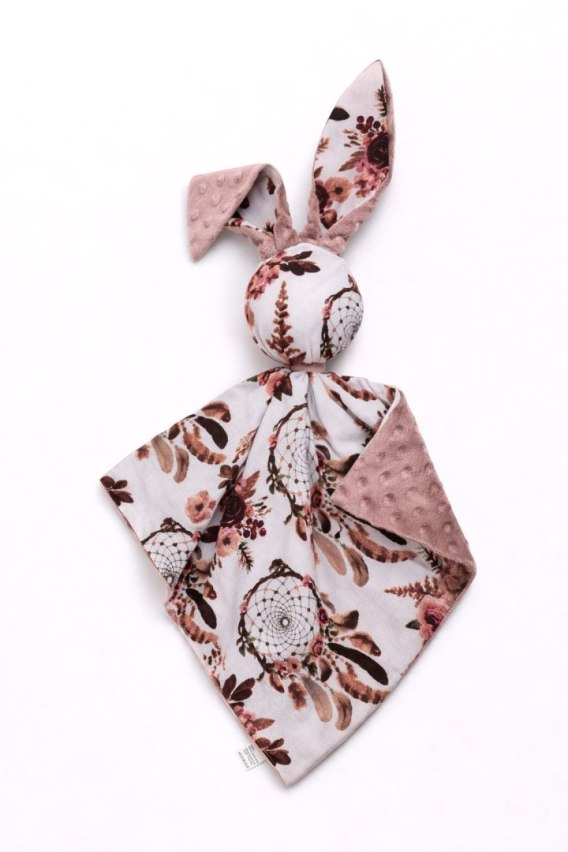Zając przytulanka DOUDOU dwustronna bawełna i minky - Łapacze snów kwiatowe - brudny róż