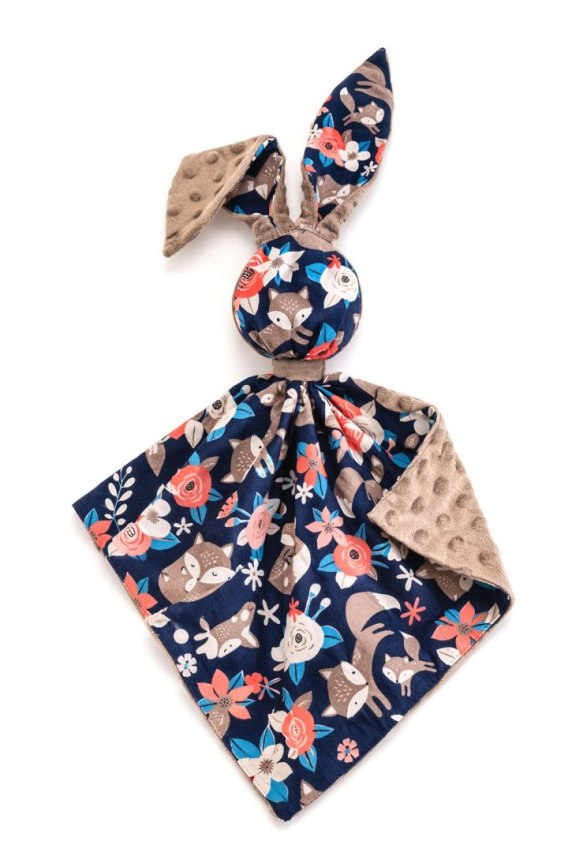 Zając przytulanka DOUDOU dwustronna bawełna i minky - Lisia rodzinka - brązowy