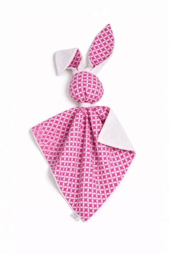 Zając przytulanka DOUDOU dwustronna bawełna i minky - Mini rozeta różowa - biały