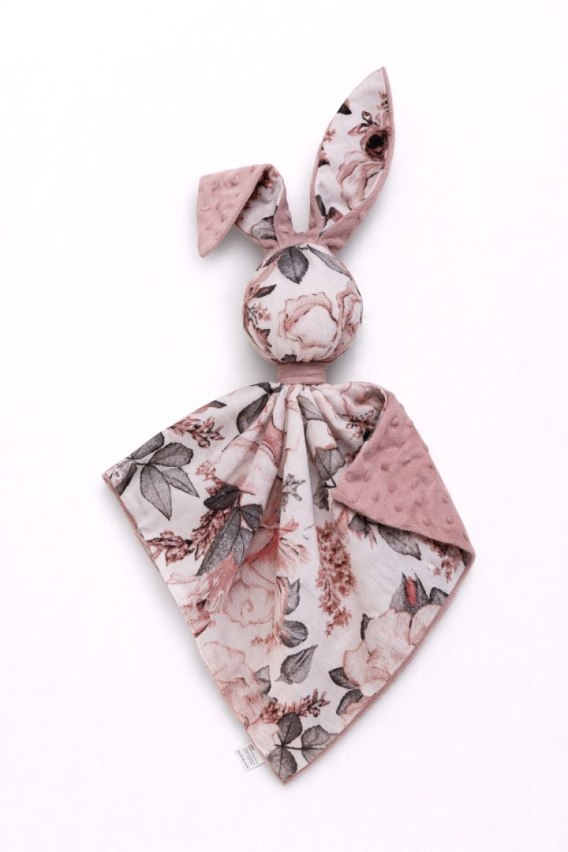 Zając przytulanka DOUDOU dwustronna bawełna i minky - Róże sepia - brudny róż