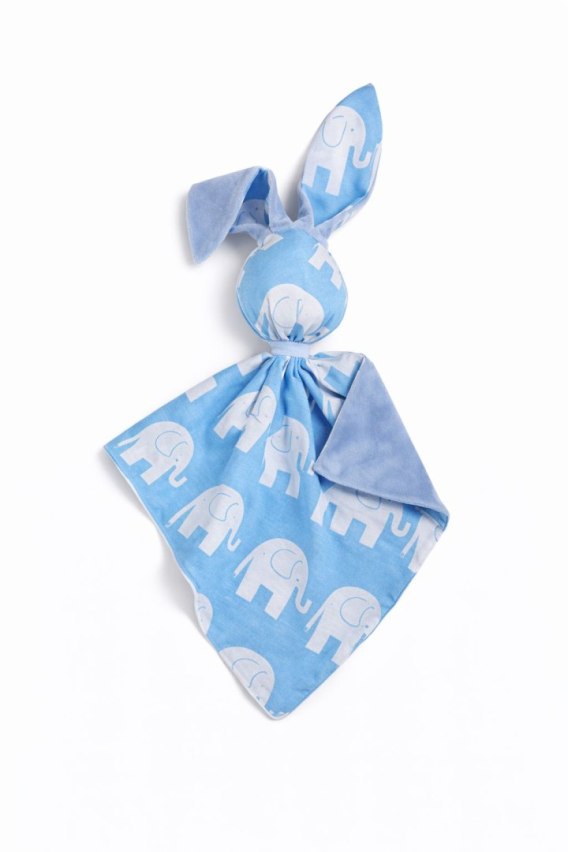Zając przytulanka DOUDOU dwustronna bawełna i minky - Słonie niebieskie - niebieski