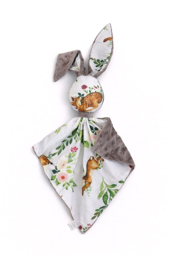 Zając przytulanka DOUDOU dwustronna bawełna i minky - W lesie - szary